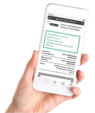 Domkom является парнёром REHAU, что подкрепляется сертификатом. Просмотреть сертификат вы можете просто наведя камеру мобильного телефона на QR-код справа!